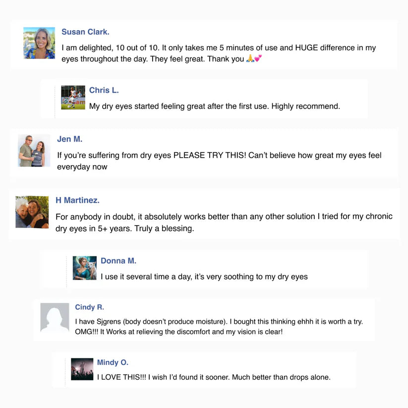 After one 5-minute session: no burning, clear vision all day, no more drops, comfortable screen time.
